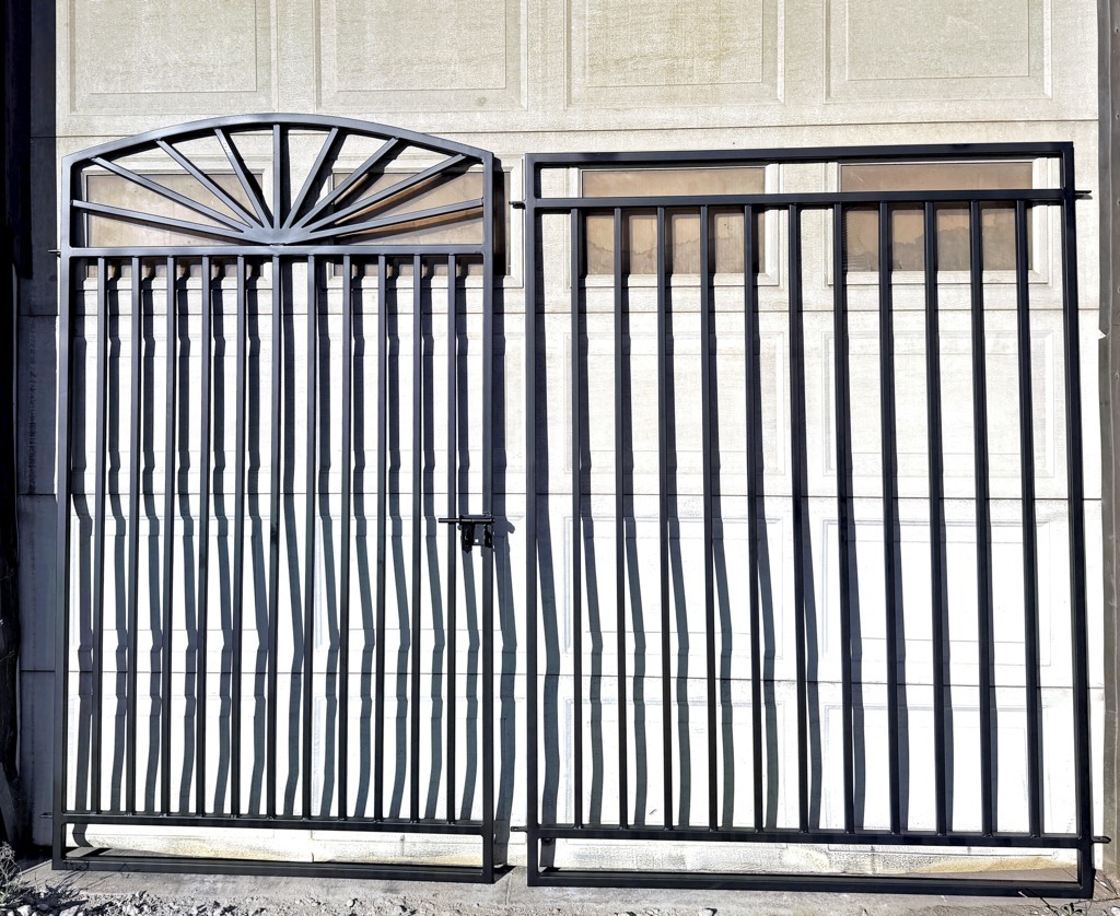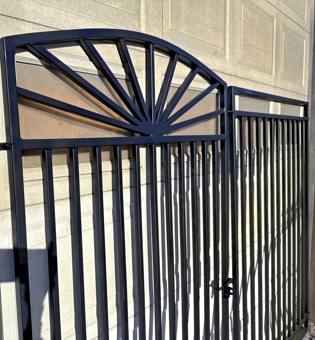 Our talented welders are busy crafting stunning wrought iron gates, like this impressive Sunburst gate that stands at 6 feet tall. The unique angular design really makes it pop in any landscape! Remember, we customize all our gates, so you can easily request different sizes, colors, and styles to match your vision. Plus, the frame is made from sturdy 1" square tubing for extra durability.