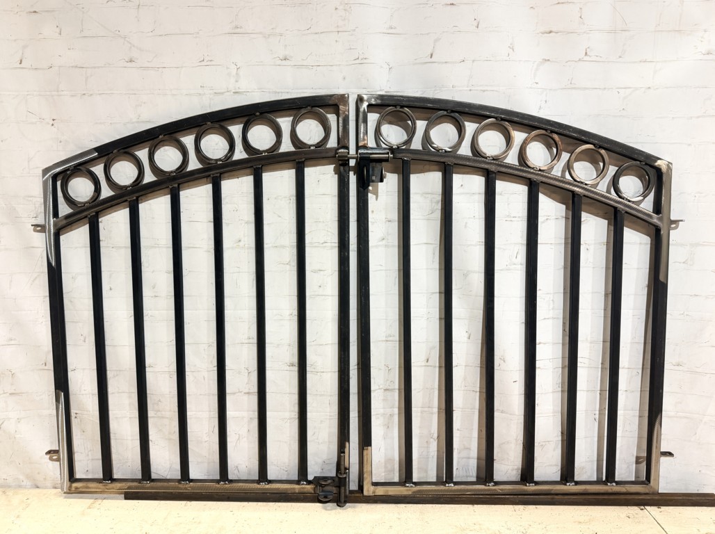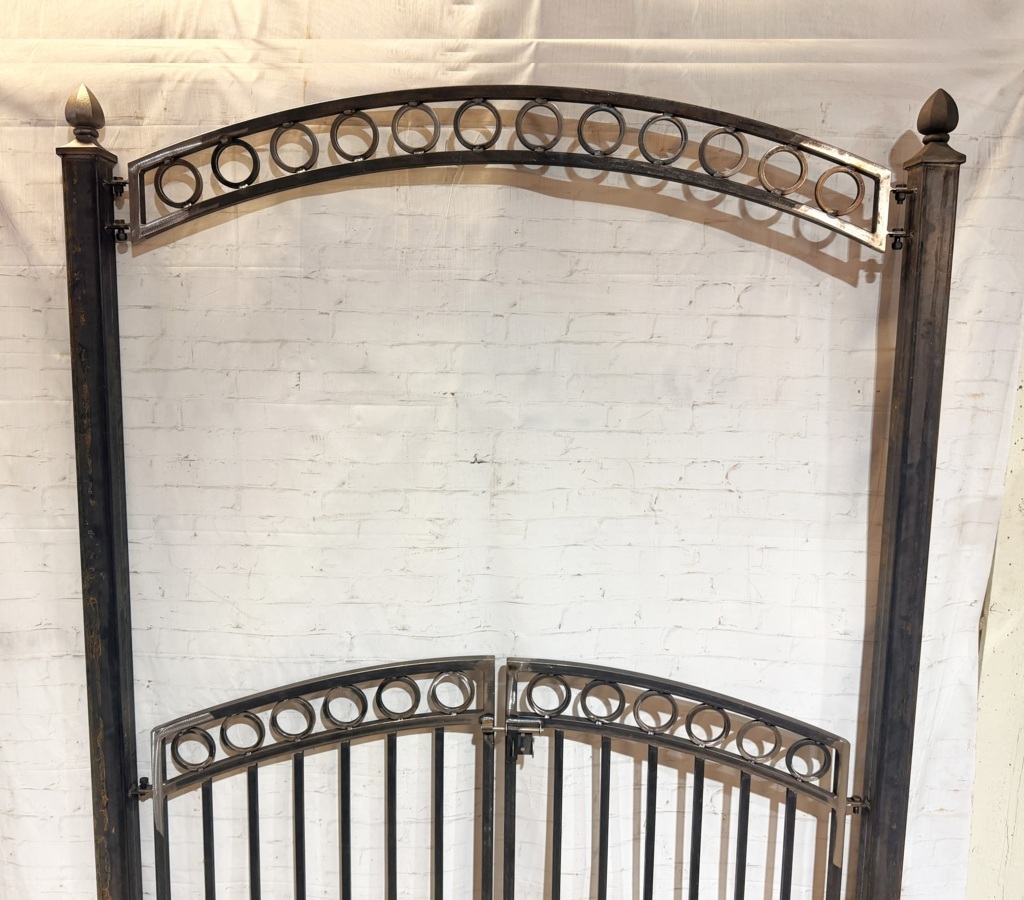 We are now making handcrafted arbor gates in several styles. This Wrought Iron Circle Design will complete your entry to welcome guests. Our tall 3" square posts connect at the top with our circle arch while the bottom connects with a double gate. Choose the gate opening inside the posts to order from 58" to 64".