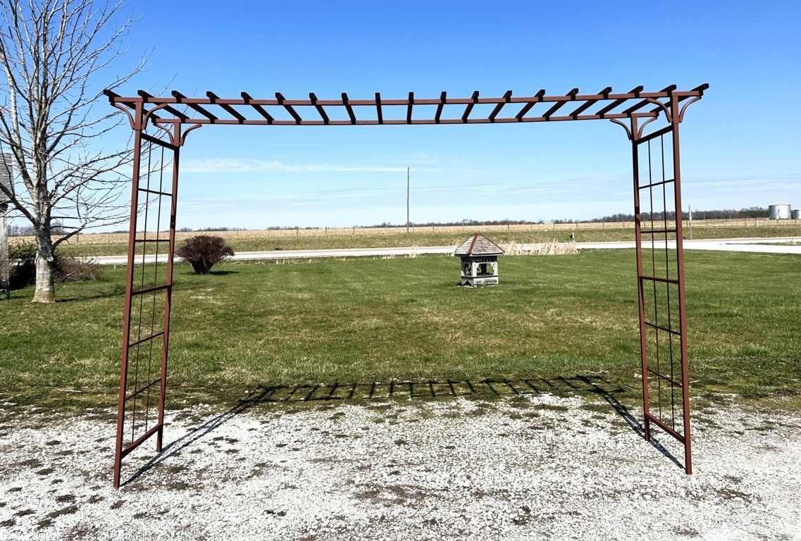 This is a great wrought iron arch for your driveway or garden to fit any space because the Arbor width is adjustable to fit your needs. If the width needs a little more or less do let us know.