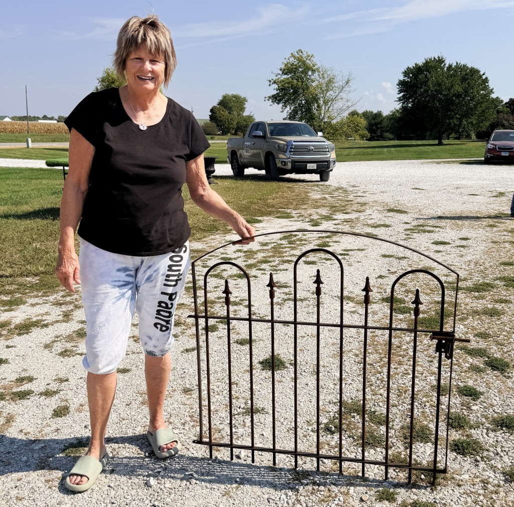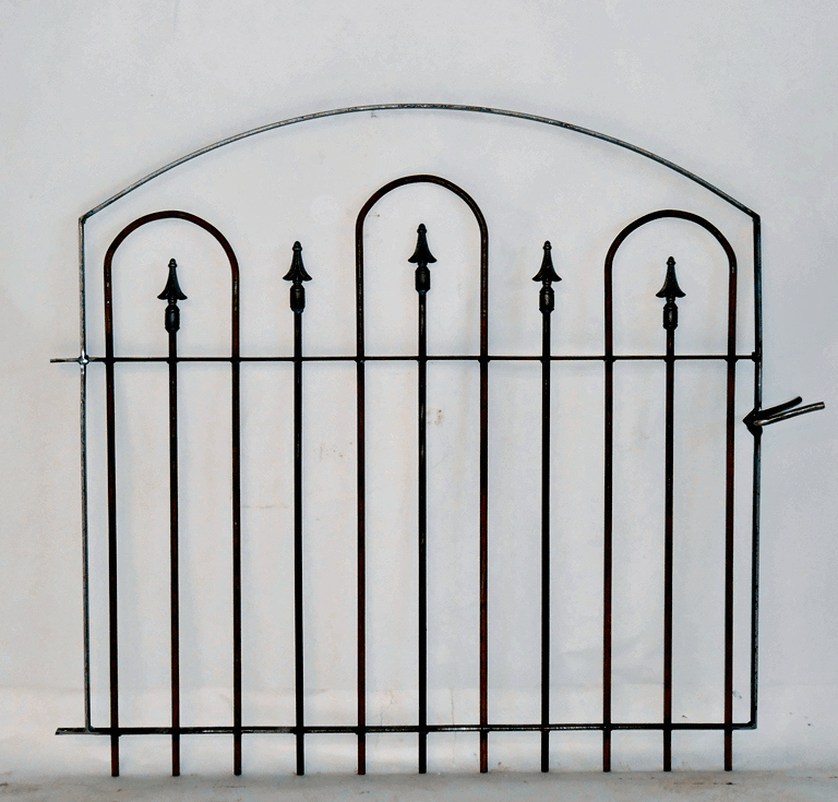 Wrought Iron Small Woodson Garden Gate - 3' Tall at the sides x 44" Wide matches the landscape fencing systems we also sell online, and it fits your custom opening. Choose your opening measurement from the dropdown list and add it to your cart at checkout. The combination antique style stakes with cast iron finials surrounded by iron hoops will give your home or garden a unique, yet classic look. No other fence gate will outlast these iron gates, and when you combine affordability with stability, it will bring a sense of satisfaction to you and your landscaping.
