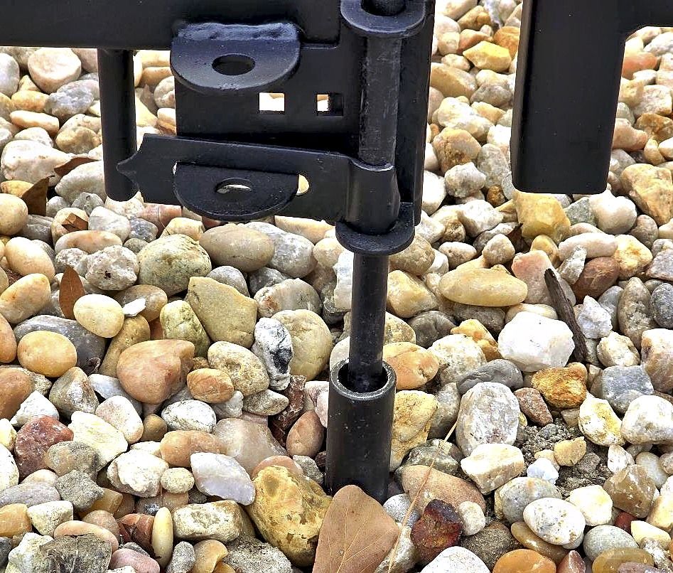 This gate will work for a selection of openings, so choose your post-to-post measurement at checkout. We do add the Drop Pin Latch at the bottom of one panel and send a ground receiver for that latch.